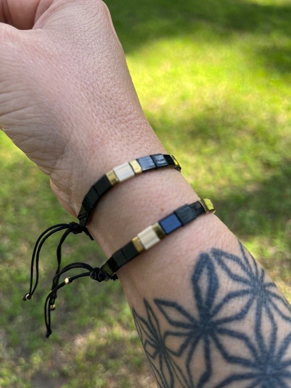 Pulsera de hilo regulable de cuentas chatas japonesas.