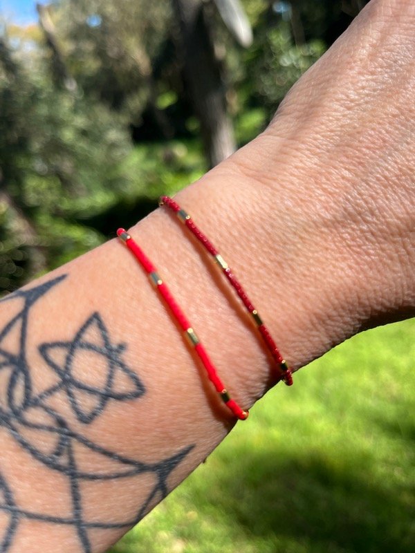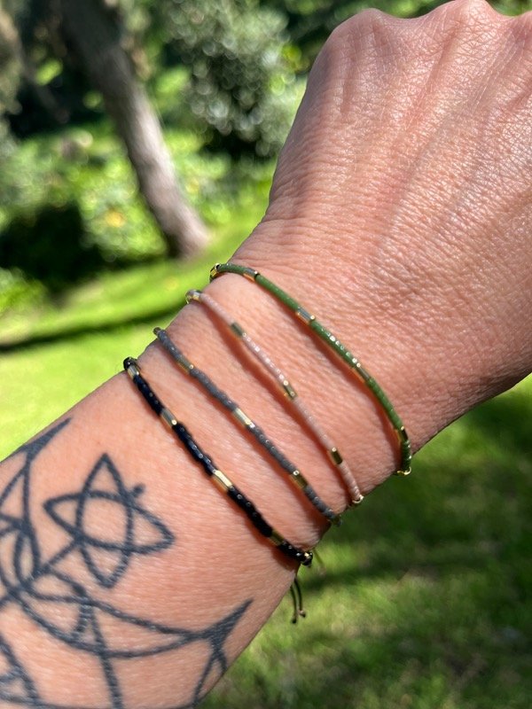 Pulsera de hilo y cuentas japonesas y detalles de piezas con baño de oro 18k. Se pueden personalizar los colores a tu gusto!
